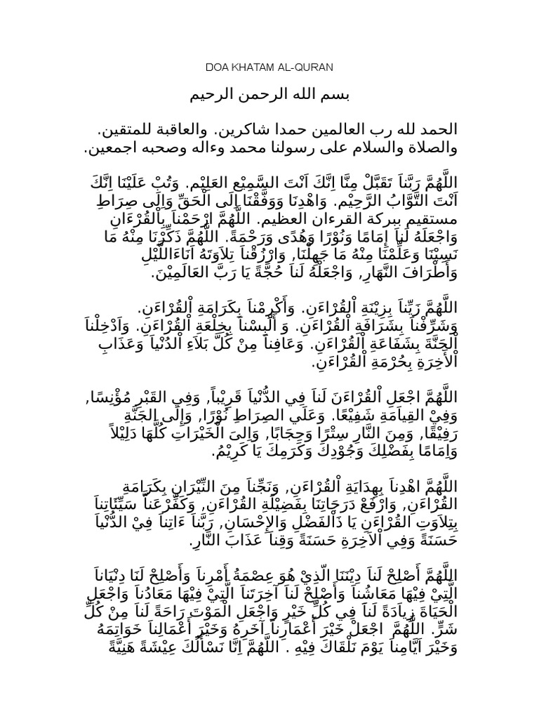 Doa Khatam Quran Ringkas Panduan Jakim Dan Bacaan Rumi